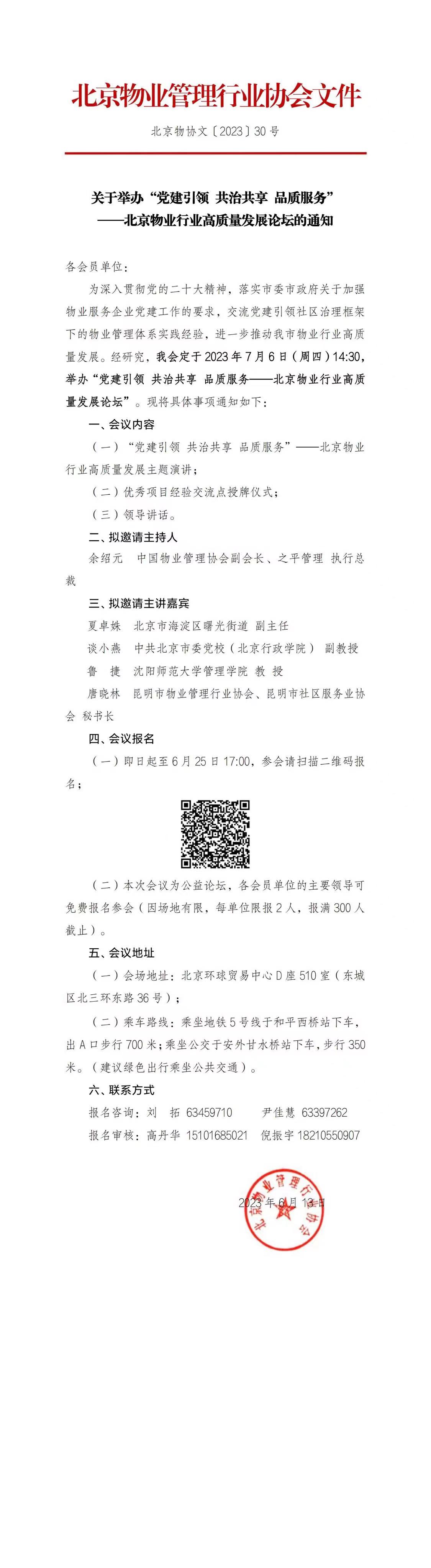 附件:关于举办北京物业行业高质量发展论坛的通知