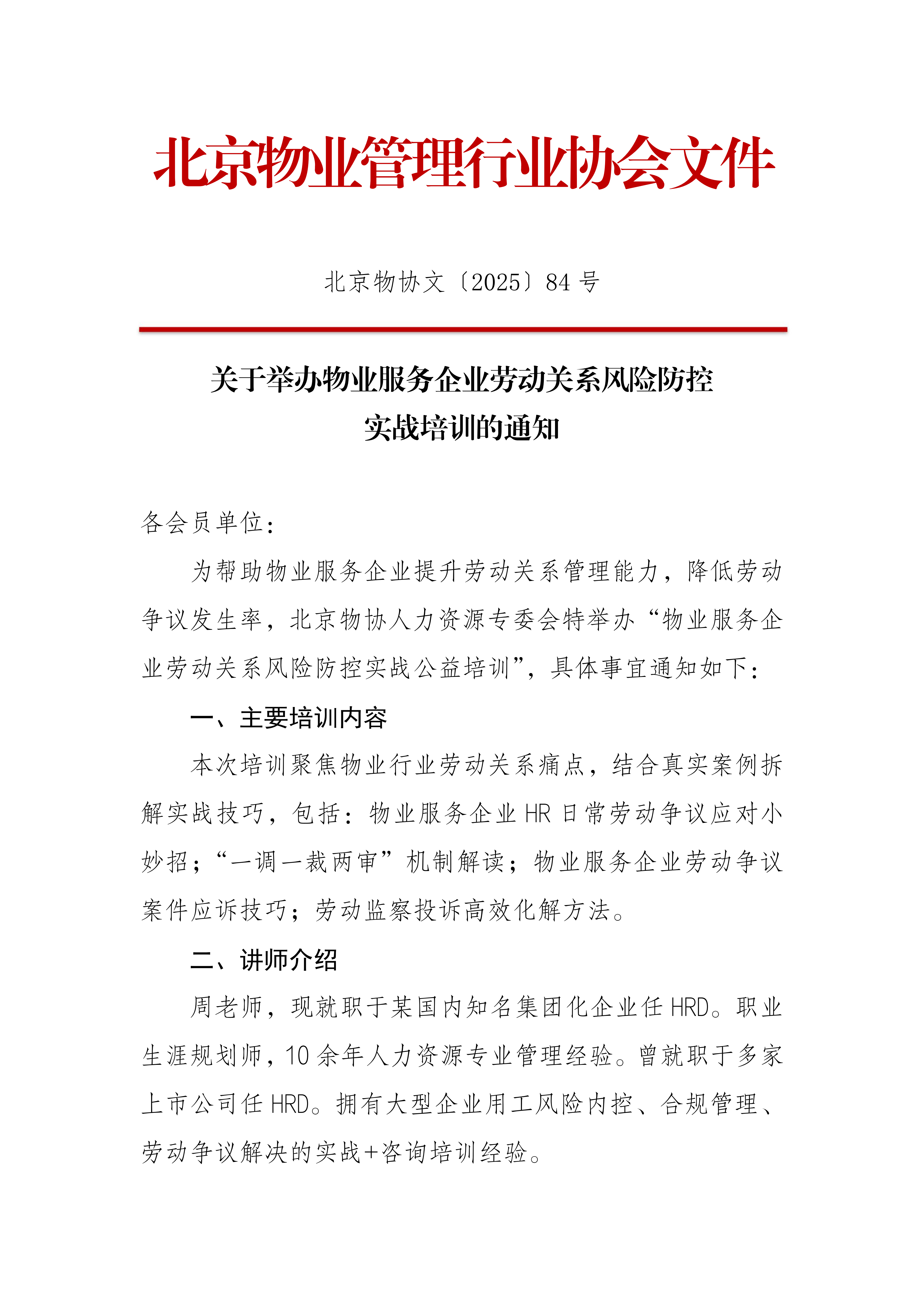 关于举办物业服务企业劳动关系风险防控实战培训的通知.pdf